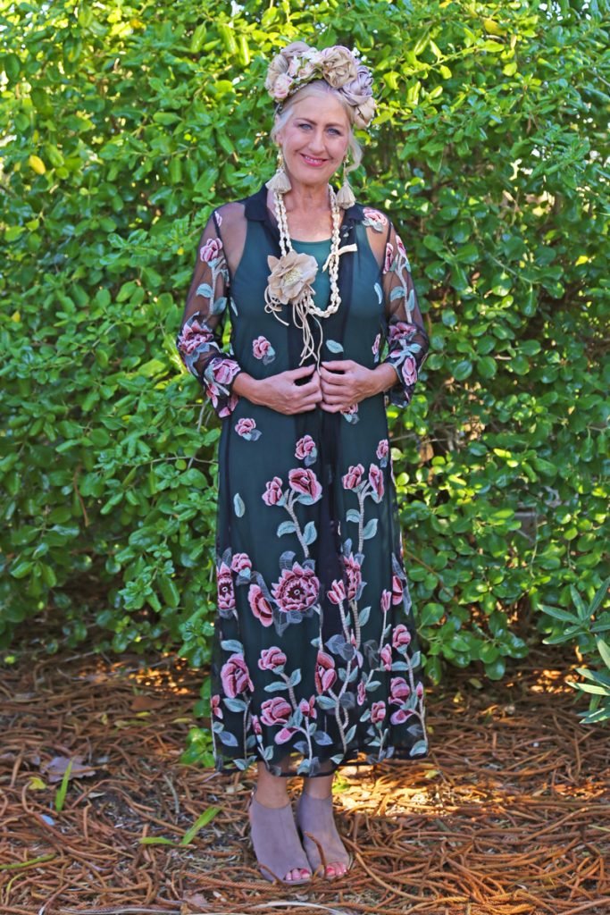 Prepare to be captivated by the delicate dance of flower buds, green leaves, and stone stems, all elegantly crafted onto an invisible net fabric.