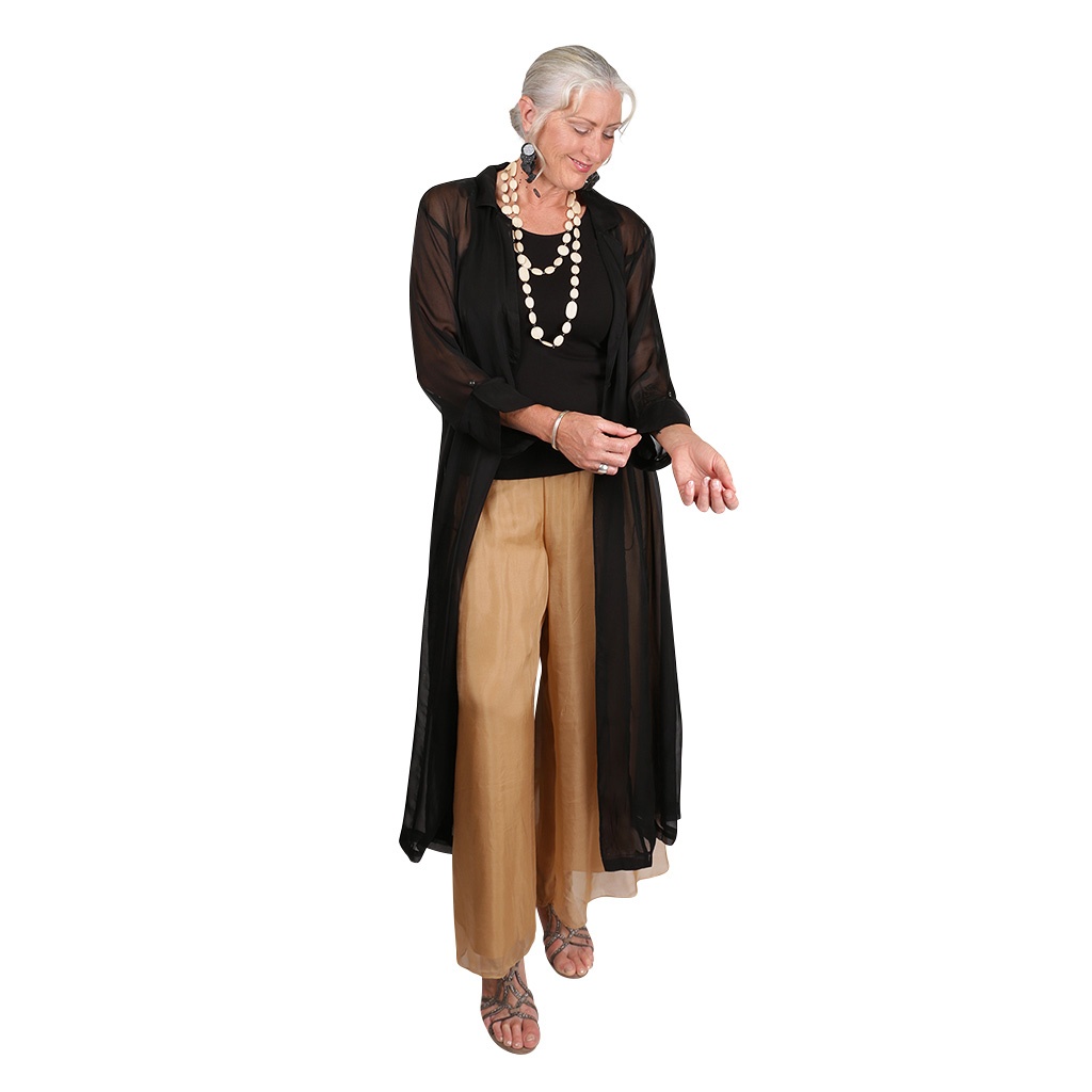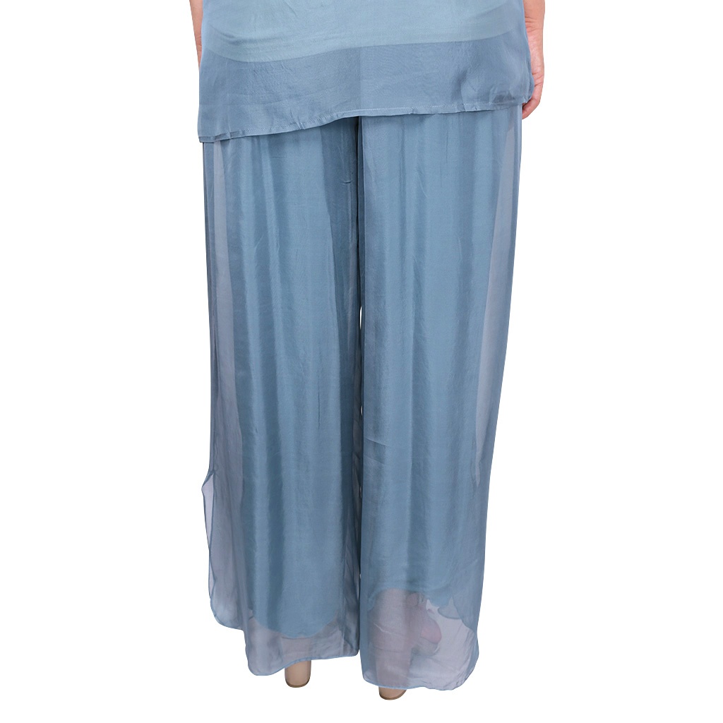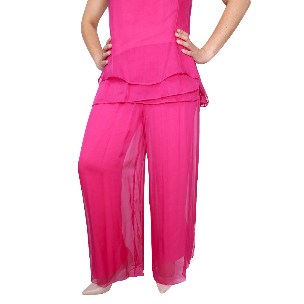 Introducing our Alluring Silk Pants, the epitome of sophistication and elegance for the modern woman. Crafted with the finest silk chiffon, these luxurious full-length pants are designed to make you feel amazing from the moment you slip them on.
