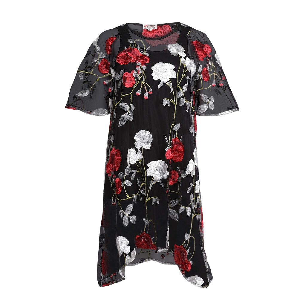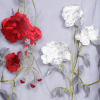 This delightful embroidery captures the essence of summertime love with its clean and crisp palette. The symbolic representation of affection is conveyed through the meandering red roses, intertwined with the white roses, and embellished with delicate vine and silver leaf motifs. As you gracefully move, the embroidery threads come to life, shimmering with the various hues, adding an enchanting allure to your attire.