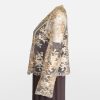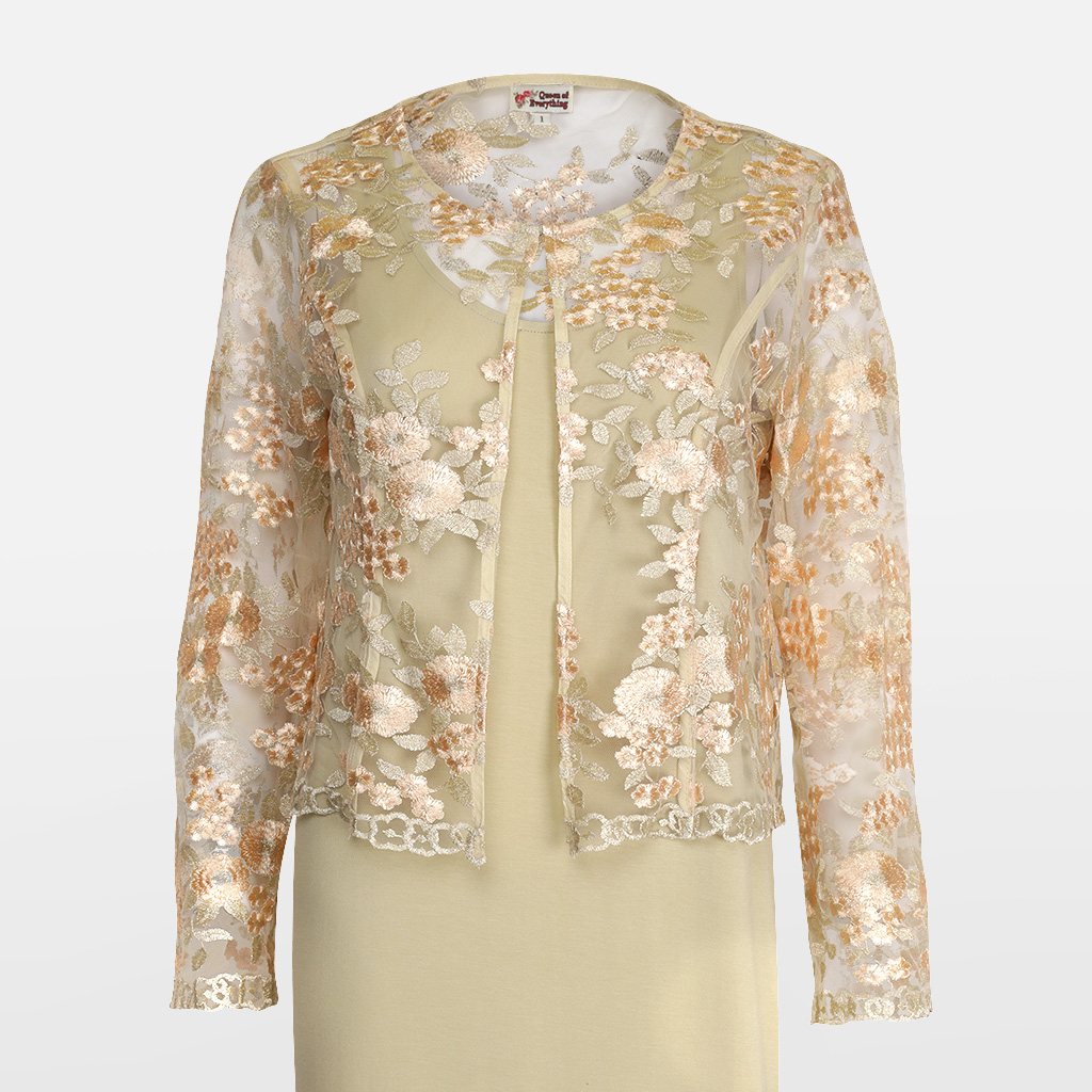 The simplicity of these monotone clusters, along with tiny leaf silhouettes in a stylish matte gold thread, creates a truly elegant design. To add depth and visual interest, we’ve carefully included larger flowers with graduated stitching that beautifully catches the light and reflects soft pinky/beige tones. When layered over charcoal, this pattern creates a striking silhouette, while over camels and stones, it casts a lovely subtle shadow. With a modern and sophisticated oriental touch, this fabric is perfect for bringing a touch of elegance to any outfit and in fact environment as you will be a beacon of sophistication & elegance.