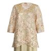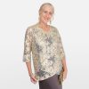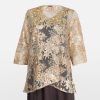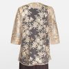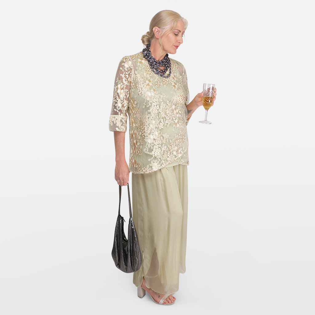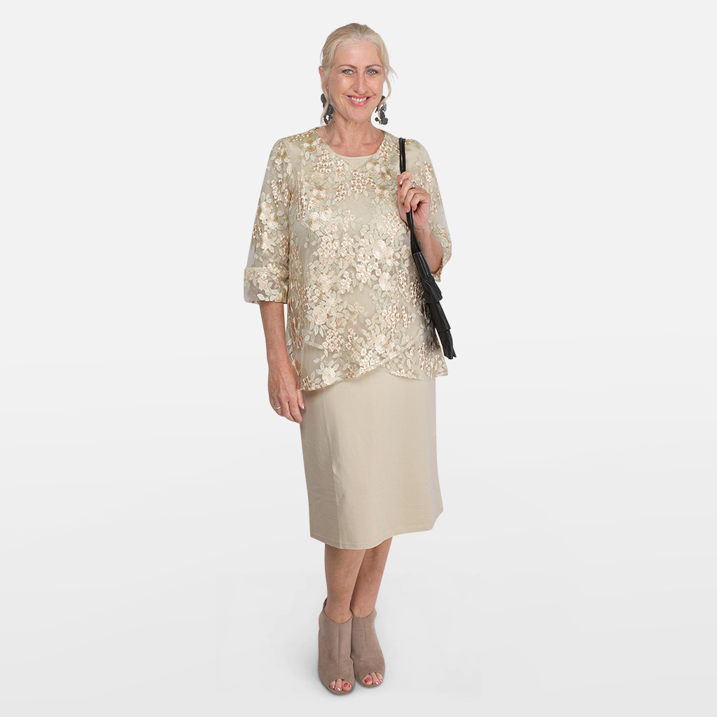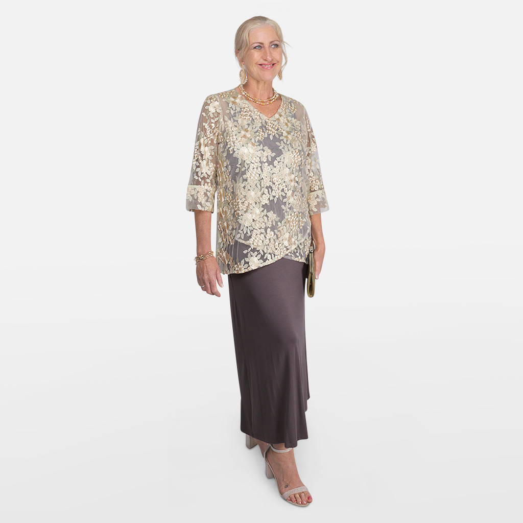 Our Nancy Crossover Top features a unique double-layer of sheer front panels that adds extra depth and dimension to the cluster’s design; resulting in a truly eye-catching outfit that’s sure to turn heads. The gentle high V-neck beautifully echoes the curved hemline, creating a flattering silhouette that flatters every body shape. The ¾ sleeves boast a wide cuff that not only adds a stylish finishing touch but also keeps the sleeves in place without any annoying bunching or rolling up. The A-line shape means it fits and flatters the bust and then skims over the hips and tummy. With its impeccable design and attention to detail, she is a must-have addition to your collection, as you will look and feel amazing in this timeless, effortlessly chic top.
