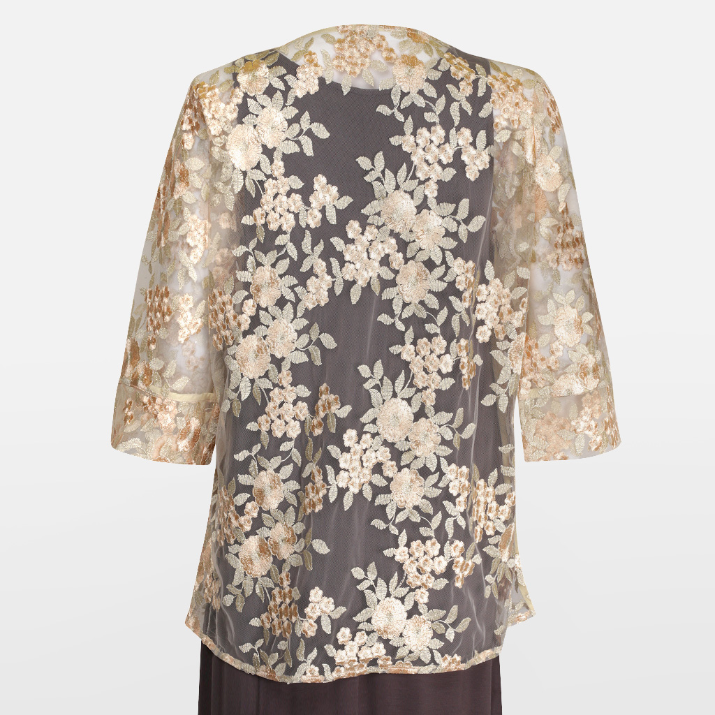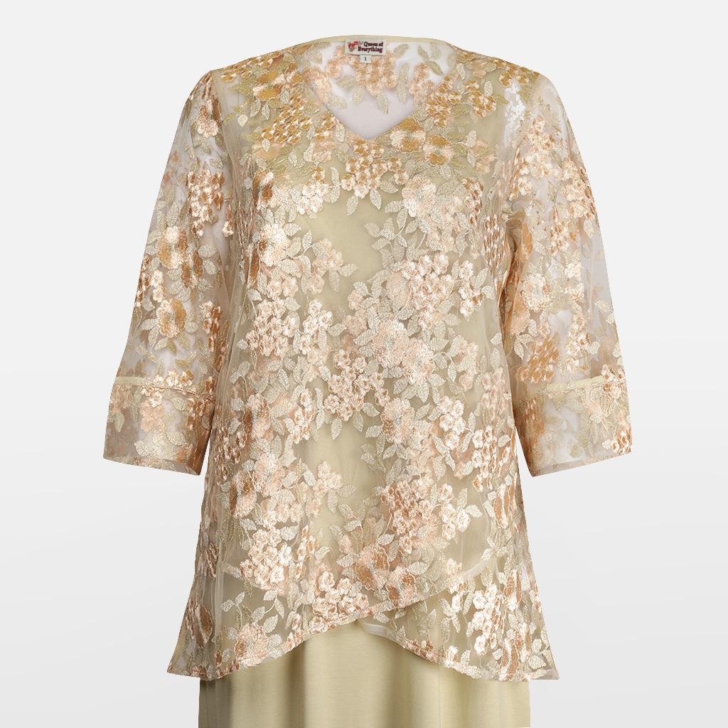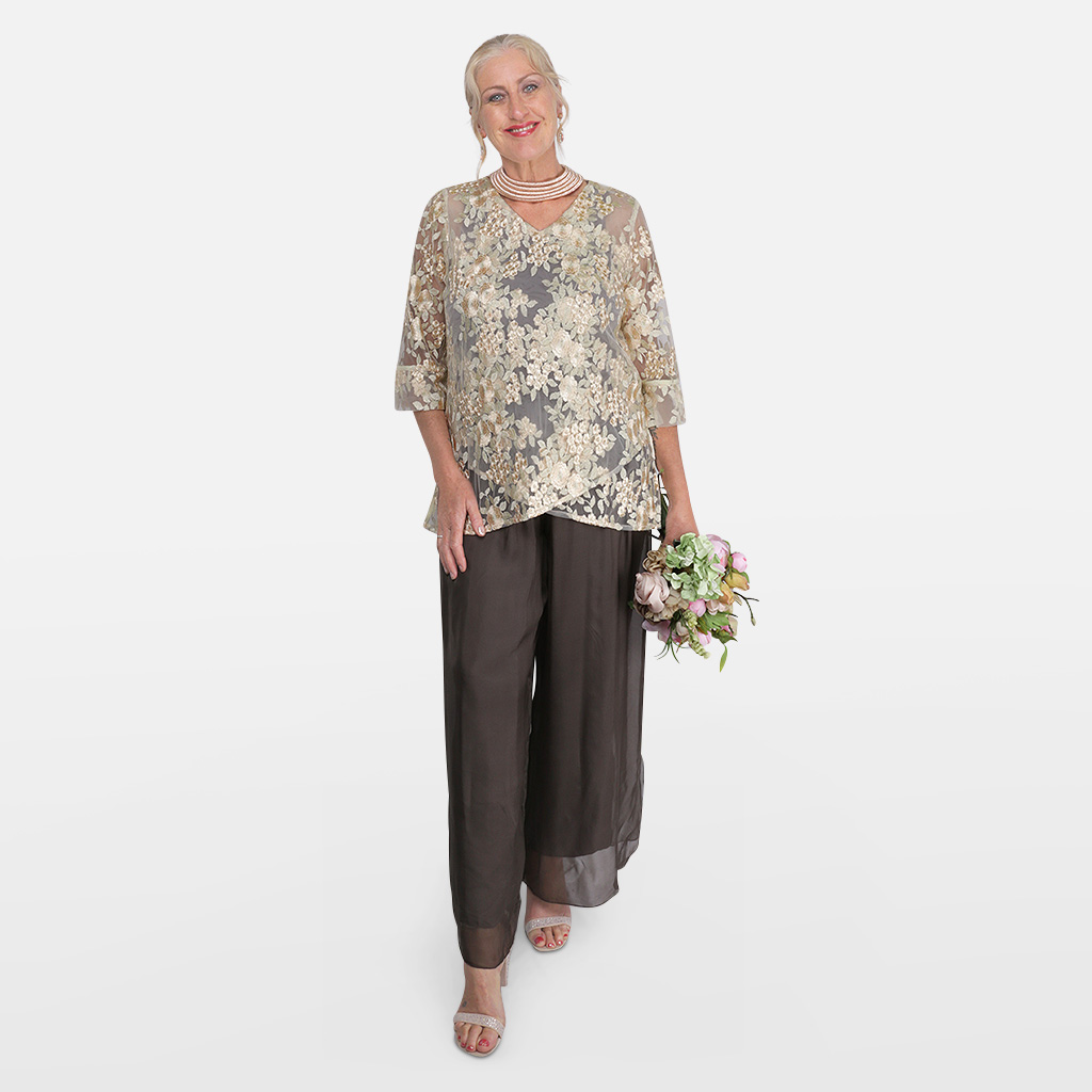 The simplicity of these monotone clusters, along with tiny leaf silhouettes in a stylish matte gold thread, creates a truly elegant design. To add depth and visual interest, we’ve carefully included larger flowers with graduated stitching that beautifully catches the light and reflects soft pinky/beige tones. When layered over charcoal, this pattern creates a striking silhouette, while over camels and stones, it casts a lovely subtle shadow. With a modern and sophisticated oriental touch, this fabric is perfect for bringing a touch of elegance to any outfit and in fact environment as you will be a beacon of sophistication & elegance.