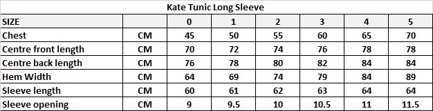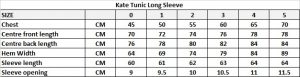 Kate Long Sleeve Top Size Chart