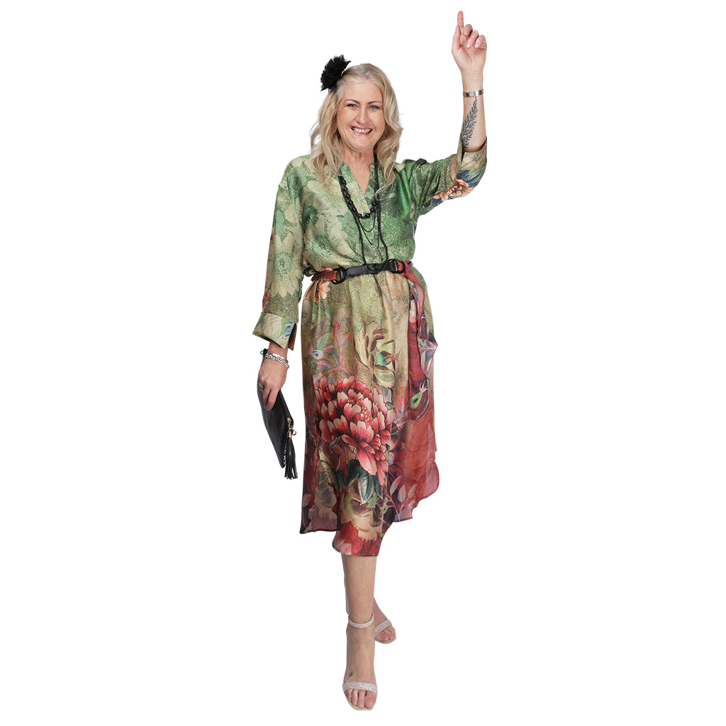 This style really flatters all of us – it’s a simple shift that falls from the bust so will camouflage your “lunch”, whilst still providing shape with the darted bustline and fitted shoulders. The v-neck placket with a half collar, creates an elegant neckline, along with the fitted ¾ sleeves and flared cuff finishing detail.