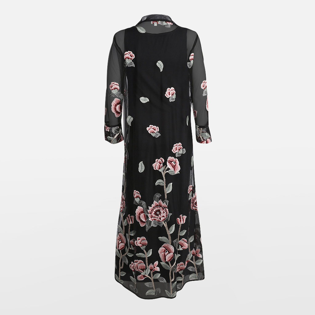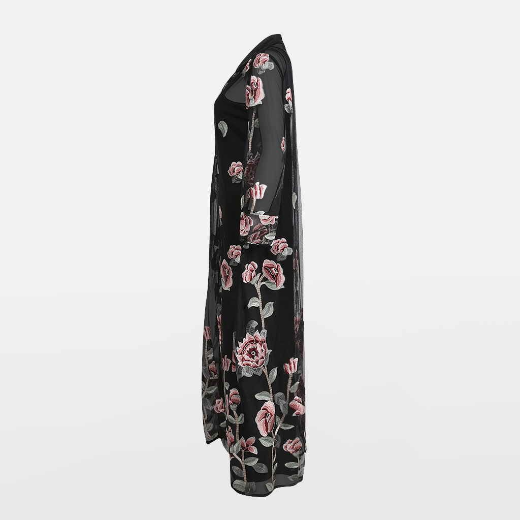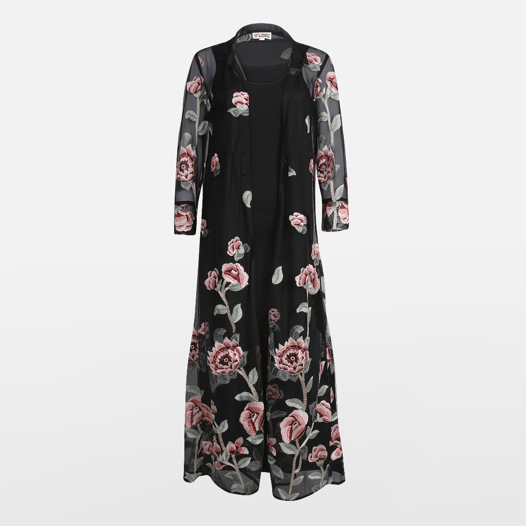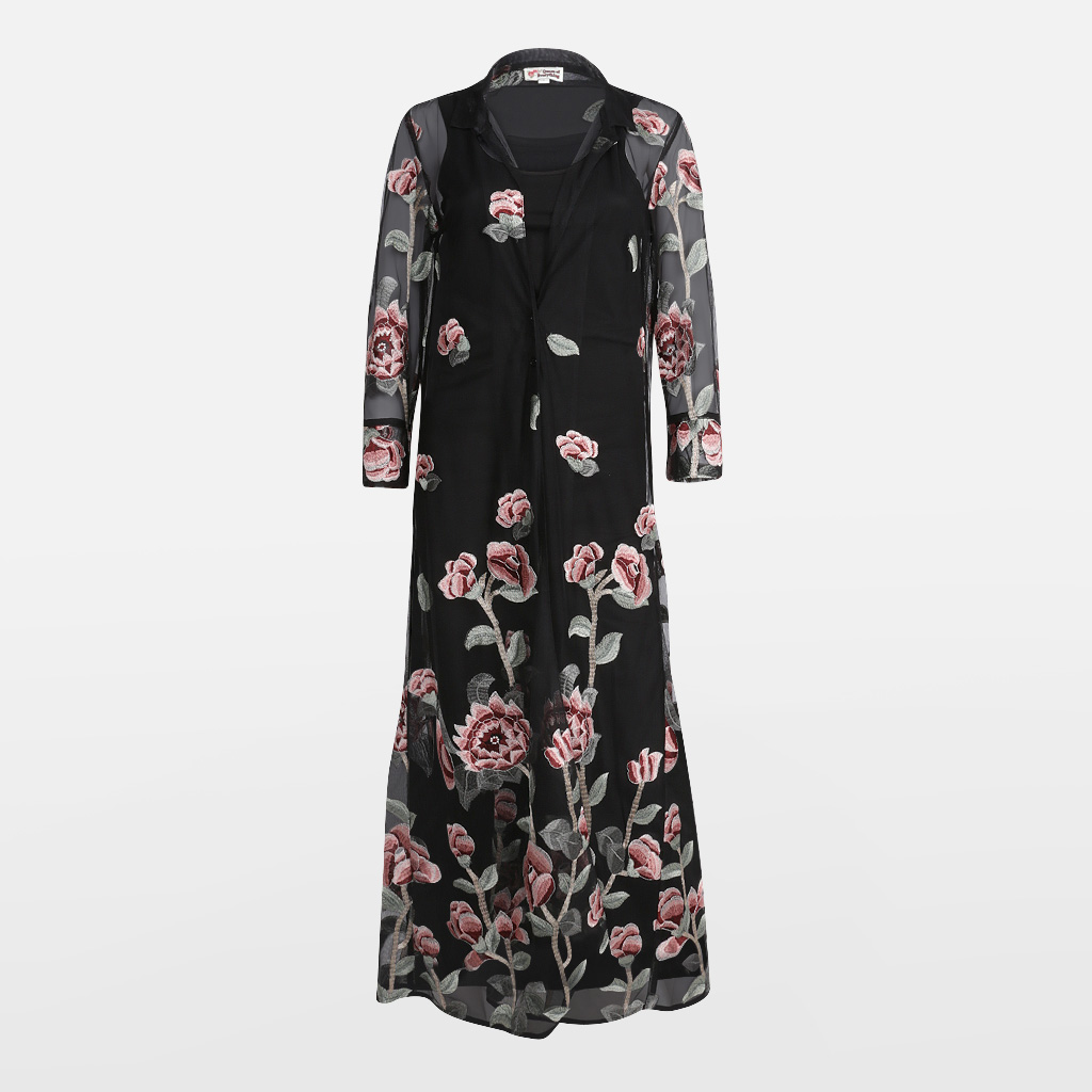 This is a truly versatile floor-length jacket, whether worn open or buttoned up at the waist and layered over a Bamboo Slip Dress in Black or Emerald, it is also a perfect complement for the matching Roses are Pink Maxine Maxi Dress.