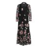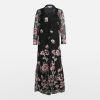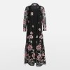 Get ready to be enchanted by a delicate dance of embroidered pink flower buds, lush green leaves and soft stone stems, all atop an invisible net fabric.