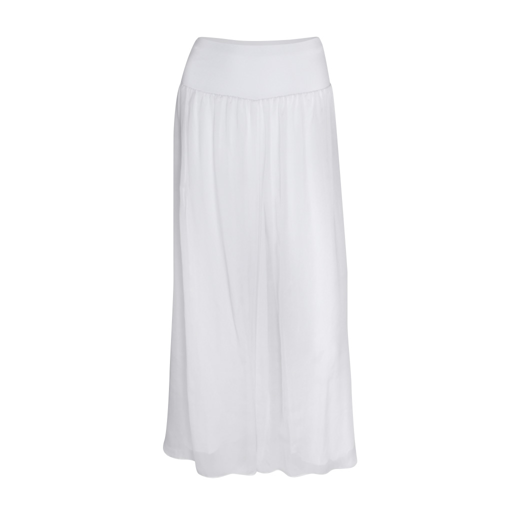 Lightweight silk chiffon with a rayon/elastane lining and stretch waistband will keep you feeling cool and comfortable as the summer heats up – the perfect solution for that fancy function!