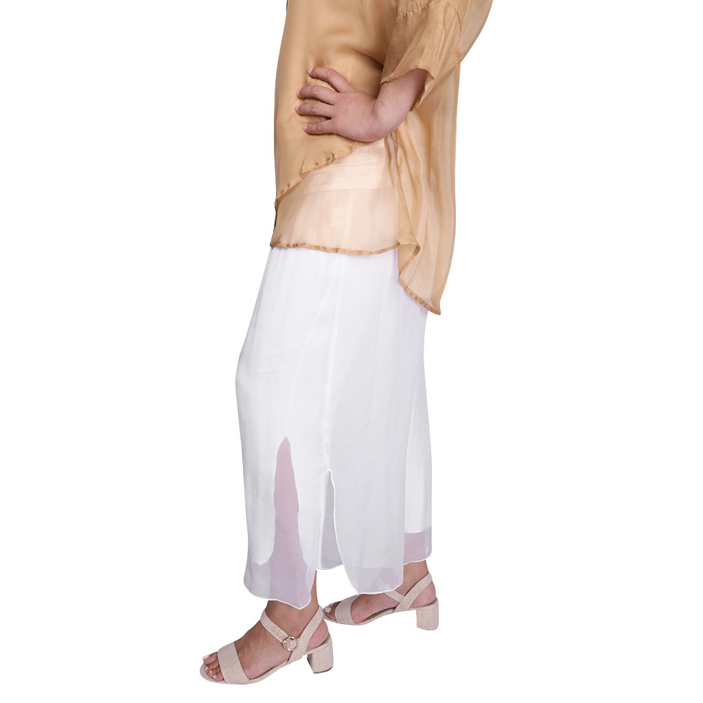 The inbuilt lining of a soft rayon jersey makes them gorgeous to wear – and as we have made the lining far narrower than the silk – yet again you have the silhouette that keeps your legs looking skinny with the smudged silhouette from the sheer silk chiffon.